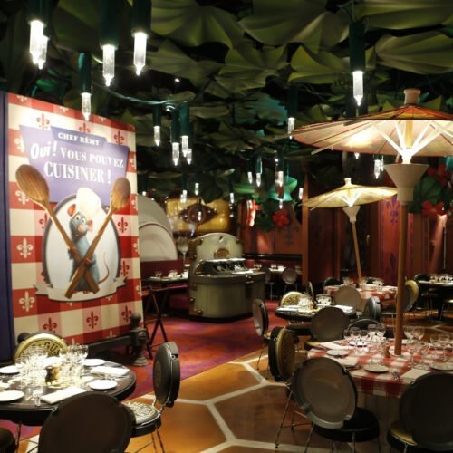 Und wenn das noch nicht genug ist, erwartet Sie nach Ihrem aufregenden Abenteuer in der Attraktion Ratatouille: The Adventure eine weitere Überraschung. Zu Ihrer Rechten befindet sich das Bistrot Chez Rémy, ein Restaurant mit mehr als 370 Sitzplätzen, welches damit das größte Restaurant mit Tischbedienung in Disneyland® Paris ist. Hier können Sie eine köstliche Mahlzeit genießen, darunter natürlich das berühmte Gericht Ratatouille und andere leckere Köstlichkeiten der französischen Küche. Lassen Sie sich von den riesigen Dekorationsstücken verzaubern, die Ihnen das Gefühl geben, so klein wie eine Ratte zu sein und machen Sie Ihren Tag von Anfang bis Ende zu einem unvergesslichen Erlebnis.
